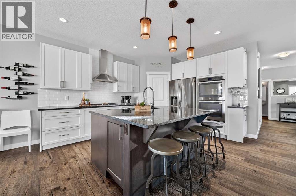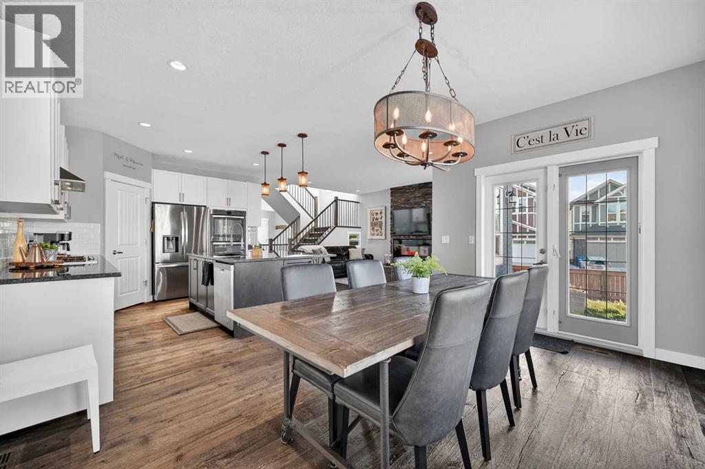 Welcome to this beautifully maintained 2-storey home in the heart of Cranston — a community known for its family-friendly atmosphere, scenic pathways, and quick access to schools, shopping, and the Bow River ridge. Situated on a desirable corner lot, this property offers both space and comfort, along with thoughtful upgrades throughout. Stepping inside, you’re greeted by a large, inviting entryway that opens into a bright main floor with engineered hardwood and 9-ft knockdown ceilings. The open-concept layout creates an easy flow between the dining area and the cozy living room, where a striking stone-faced electric fireplace becomes the natural gathering point. The kitchen is designed for those who love to cook and entertain — featuring stainless steel appliances including a chimney-style hood fan, built-in double ovens, and a gas cooktop. Granite counters, ample white cabinetry, a tile backsplash, a built-in hutch, and a spacious walk-in pantry provide both style and functionality. The oversized island with a silgranit sink, breakfast bar, pendant lighting, and extra storage ties it all together. From the dining area, a door leads to the large exposed-aggregate patio, perfect for summer evenings outdoors. The main level also includes a convenient laundry room with a sink, a 2-piece bathroom, and access to the double attached garage — complete with a built-in dog run and exterior door for easy outdoor access. Central air conditioning and built-in exterior LED lighting add comfort and curb appeal year-round. Upstairs, the primary bedroom offers a peaceful retreat with a generous walk-in closet and a 4-piece ensuite featuring ceramic tile flooring, granite counters, a large soaker tub, a walk-in shower, and a bright window. Three additional well-sized bedrooms, a full 4-piece bathroom, a linen closet, and a spacious bonus room with a vaulted ceiling complete the upper level — giving the whole family room to spread out. The basement is partly finished with framing and electrical already completed, making it easy to customize the space to your needs. It’s laid out for a future bedroom, full bathroom, large family or media room, and plenty of storage.Outside the home, Cranston offers an impressive list of amenities: multiple schools, parks, playgrounds, and the Cranston Residents Association with its year-round programs and facilities. You’re minutes from Seton’s shops, restaurants, YMCA, and South Health Campus, as well as the endless pathways along the Bow River and Fish Creek Park. This is a fantastic opportunity to own a well-cared-for home in one of Calgary’s most sought-after communities — a place where comfort, convenience, and lifestyle come together seamlessly. (id:47421)