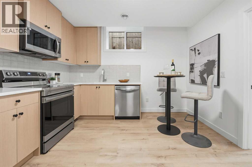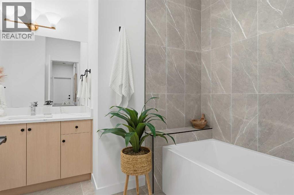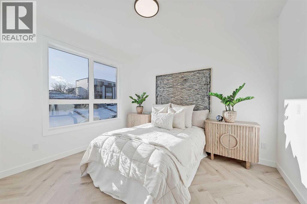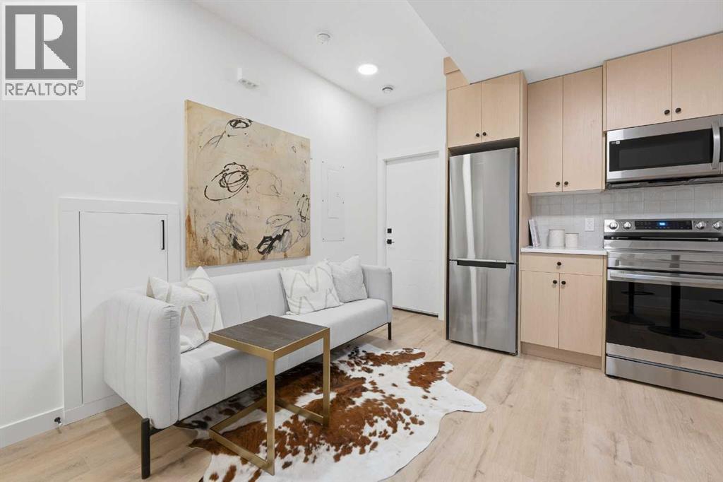 Move into the heart of South Calgary today with this brand-new, walkout townhome that perfectly blends luxury, location, and low-maintenance living! Thoughtfully designed w/ 3 beds, 2.5 baths, and a LEGAL 1 BED SUITE (approved by the city), this is inner-city living without compromise! The interiors strike a perfect balance between modern luxury & livable design. Find high-end finishes that are rare to find at this price point — blonde wood tones, sleek custom cabinetry, and modern & thoughtful tile. Designer hardware, mid-century inspired embellishments, and a clean neutral palette give this space a fresh, elevated vibe. The kitchen is the heart of the home, designed w/ both form and function in mind. A large quartz island anchors the space w/ bar seating for casual meals or morning coffee. There's a full stainless steel appliance package, generous cabinetry, and a stylish backsplash that adds just the right amount of visual interest. It's open to the dining area and spacious living room & balcony, creating the perfect layout for hosting or just relaxing at home. And don’t forget the upscale powder room, complete w/ designer lighting. Upstairs, the primary suite feels like a boutique hotel retreat w/ a PRIVATE BALCONY, a large walk-in closet, and a modern 3-pc ensuite w/ a fully tiled walk-in shower. Two additional bedrooms and a full bathroom give you space for guests, kids, or home office! And yes, there's a laundry room upstairs, tucked conveniently between bedrooms. Downstairs is perfectly set up for a mortgage helper, additional income generator, or the perfect spot for multi-generational living w/ a LEGAL 1-BED SUITE (approved by the city). The modern touches flow into this space as well, w/ an open kitchen & living room space w/ ceiling-height cabinetry, stainless steel appliances, and quartz countertops, complete w/ separate laundry, a great-sized bedroom, and a full 4-pc bathroom. There is a separate entrance to the suite, as well as access from the main h ome to the suite for complete ease of use. The suite also boasts a private deck. The low-maintenance landscaping and a detached garage at the back are a serious bonus in the inner city. The backyard also features upright bike racks & secure CycleSafe lockers for added convenience. You’re tucked into a tree-lined street in South Calgary, but just a short stroll to absolutely everything. Our Daily Brett and South Calgary Pool & library are just at the end of the street, cSPACE King Edward’s arts & community programming is just a few blocks over, and all the everyday amenities in Marda Loop are w/in walking distance — Blush Lane Organic Market, Safeway, Shoppers, fitness studios, and an incredible lineup of restaurants. You’re minutes from 17th Ave’s restaurants & nightlife, and a quick commute to downtown! Whether you're looking for a stylish new home in an established neighbourhood or a long-term rental property w/ strong demand, this unit is an incredible opportunity! *pictures from show suite* (id:47421)