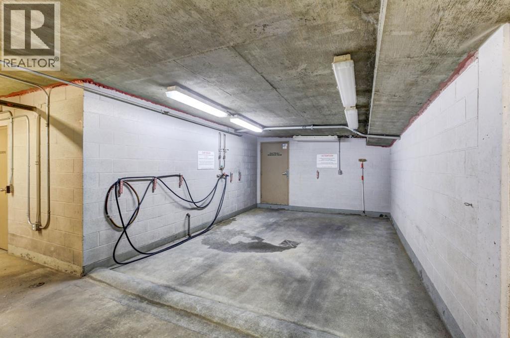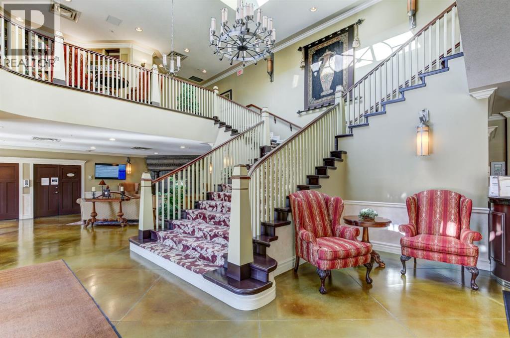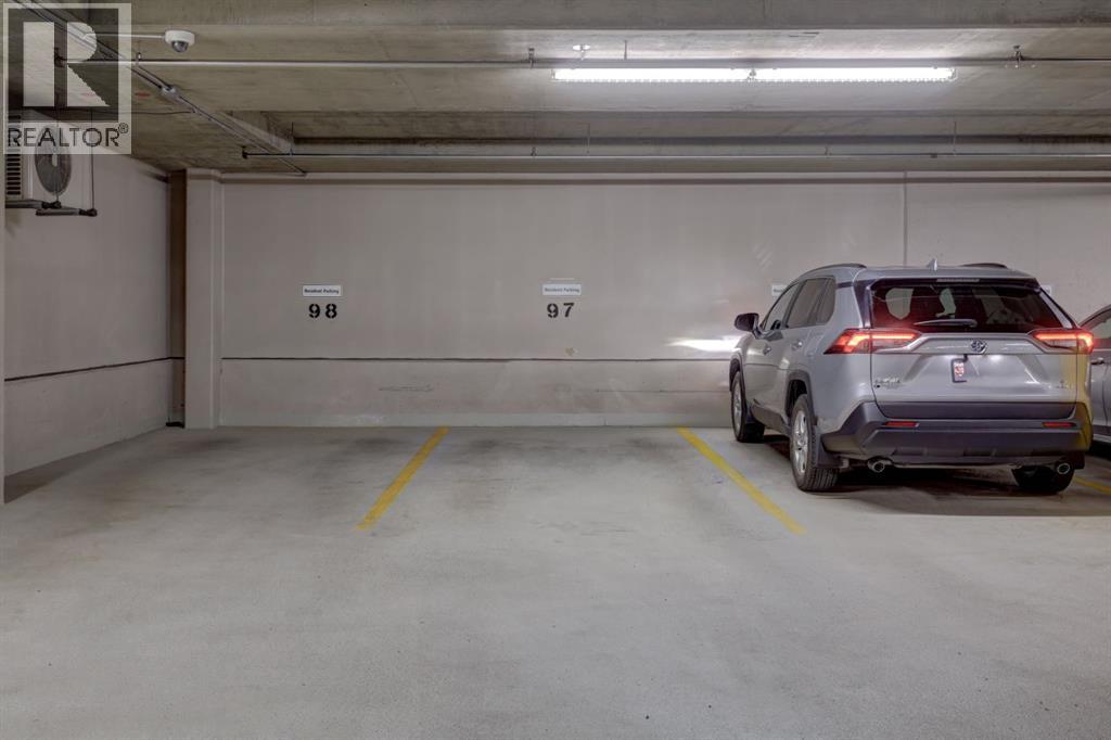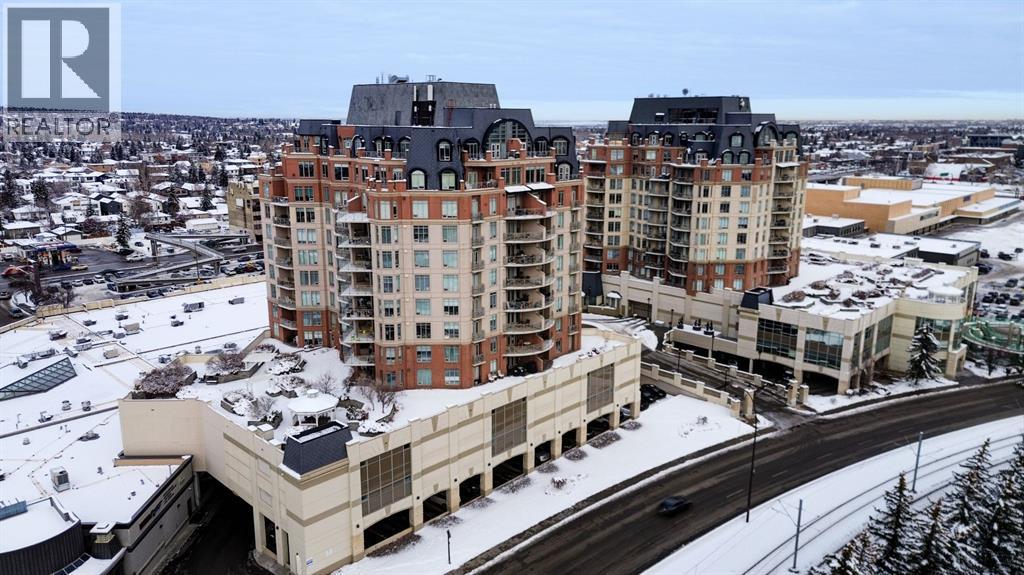 Welcome to the East Tower of the Renaissance 18+ condominium complex! This 2-bedroom, 2-bathroom condo has a very homey feel with hardwood floors, oak cabinets and a gas fireplace. The kitchen has stainless steel appliances, plenty of countertop area, and a cutout window that allows natural light into the kitchen from the large east facing living room windows and balcony door! There is a den conveniently located at the front door that has a coat closet. The living room and dining room areas have a bright and open concept. The spacious primary bedroom has access to the balcony that has an unobstructed view to the east. The 5-piece ensuite has a deep soaker tub, and a separate shower. A second bedroom offers private access to the 4-piece main bathroom with a stacked washer and dryer. This home also includes one titled, heated underground parking stall. The assigned storage unit is located on the main floor. Residents of the Renaissance enjoy exclusive access to amenities, including a 24 hour concierge, fitness centre, games and craft rooms, a movie theatre, meeting room, outdoor terrace, and guest suite. There is an elevator with direct indoor access to North Hill Shopping Centre. The Lions Park C -Train station is nearby. Easy access to downtown, SAIT, Jubilee Auditorium, and 16th Ave. Call your favourite Realtor to view this lovely property. Click on the 3D symbol at the top of the listing page to view the entre virtual tour. (id:47421)