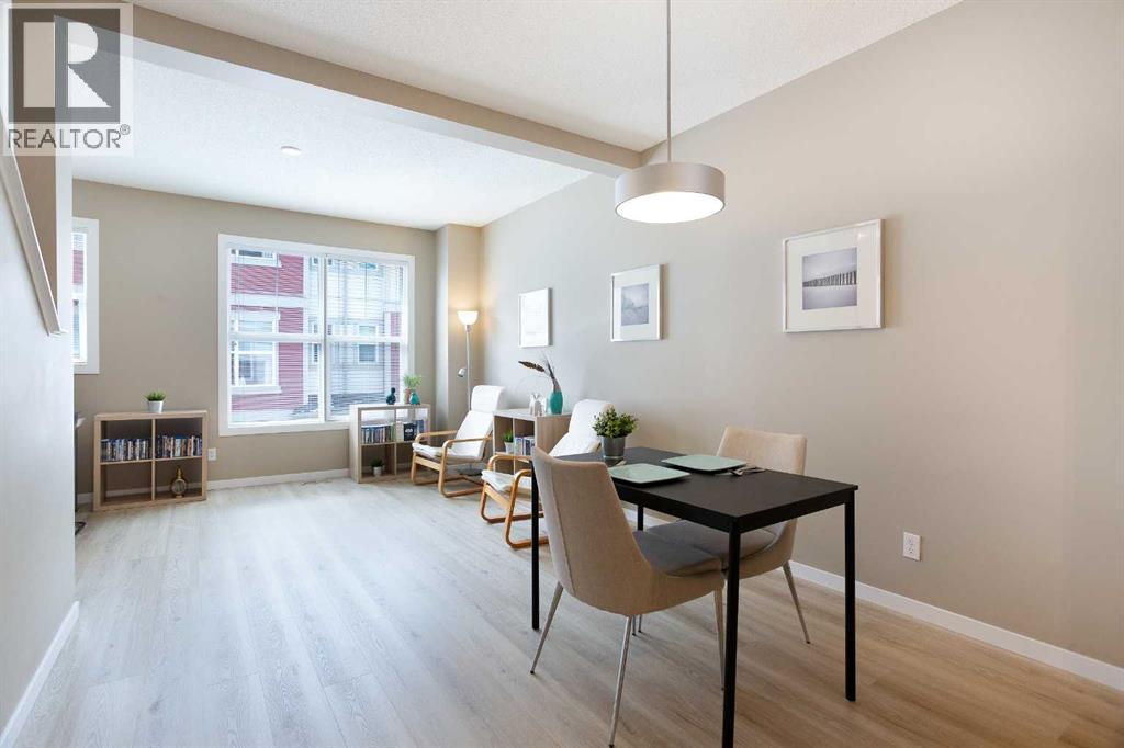 YOUR NEW HOME ... is located in one of Calgary's most sought after family friendly communities, this 2 storey townhome offers the perfect blend of style, comfort, and convenience. Steps from schools, playgrounds, daycare, and the New Brighton Athletic Park, future LRT, South Campus. You will also enjoy quick access to 130 ave shops, McKenzie Townes High Street and access to major routes like Stoney, Deerfoot trail and 52 st. Inside, oversized windows and tall ceilings fill the open concept layout with natural light. The kitchen features upgraded wood cabinetry, black appliances, a classic tile backsplash, and a large eating bar-ideal for both everyday living and entertaining. The main floor also includes a spacious dining area, inviting living room and convenient powder room. Upstairs, you'll find two large primary bedrooms, each with their own private ensuites and walk in closets - perfect for families, professionals or room mates. They are separated at each end of the hall, giving lots of privacy. Your laundry facilities are also on this floor, for the utmost of convenience. Additional highlights include a lower deck, an upper deck off of the kitchen with a gas hook up, a single attached garage and a second covered parking pad. The grounds are meticulously maintained and pride of ownership is exuded through the entire complex. Located in the middle of the complex and far away from 52st noise, the Low condo fees add to another reason to love living here, oh, and a new hot water tank was just installed. (id:47421)