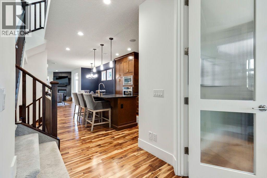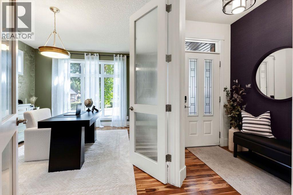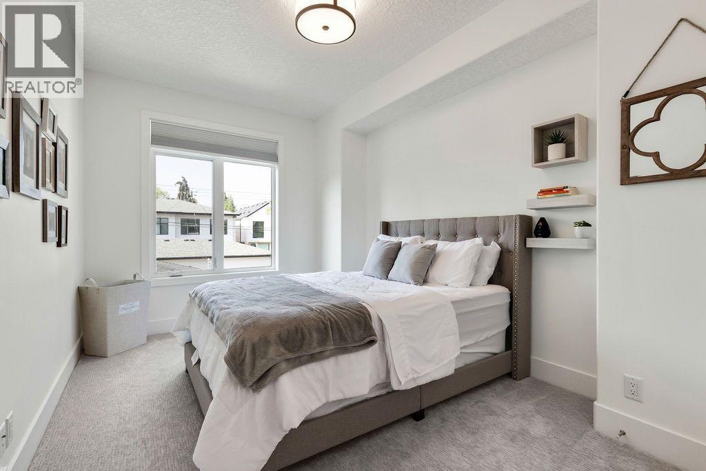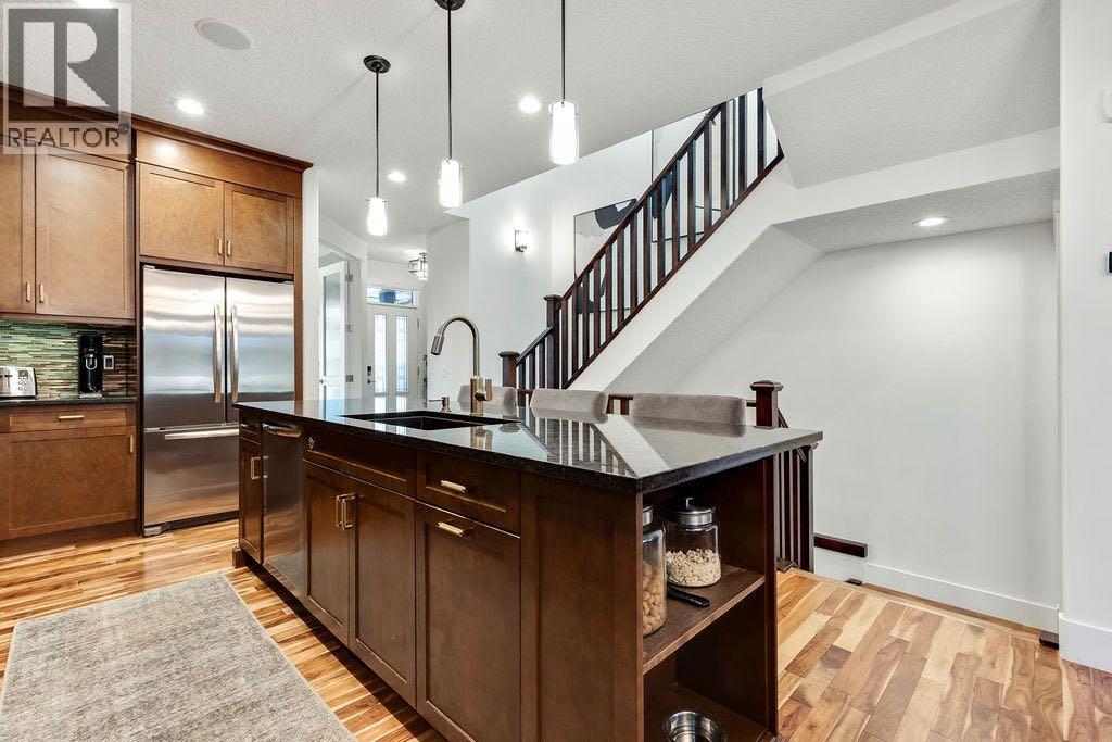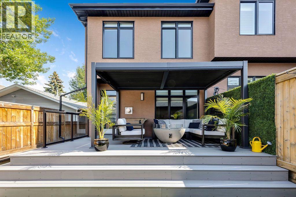 Welcome to this stylish inner city home in the highly desirable community of Killarney! Offering 3,182 sqft of developed living space, this custom build spared no expense. From the lower level to the top floor, enjoy 9 ft ceilings, dual climate controls with in-floor heating, and a smart home system featuring MYQ, SENSI, and in ceiling speakers for SONOS automation on every level.Off the front entry sits a custom built office designed by the Koehn Design Team, complete with French doors for privacy and shaded by the beautiful mature oak tree out front. The modern chef’s kitchen boasts custom cabinetry, quartz countertops, a large island with seating, and stainless steel appliances, opening onto a spacious dining area and a cozy living room with a gas fireplace and updated tile surround.Step outside to one of the finest outdoor living spaces you’ll find. Trex decking, a sun soaked west facing backyard, and lush gardens enhanced by underground sprinklers. Featuring a gravelled dog and double garage with dual EV chargers on a paved back lane.Upstairs, you’ll find 3 spacious bedrooms including a primary retreat with spa-inspired ensuite and walk-in closet, plus upper-level laundry and skylights that flood the home with natural light. The fully finished basement includes a large rec room, wet bar, full bath, and a flex/guest room currently set up as a home gym.Additional highlights include - Open to below staircase, Hot Water on Demand, Acacia Hardwood floors, new paint and carpets (2021), Air conditioning - perfect for Calgary summers, and incredible curb appeal on a quiet tree lined street. All this just minutes from downtown, Marda Loop, schools, parks, and transit.A must-see home in one of Calgary’s most sought after neighbourhoods! (id:47421)