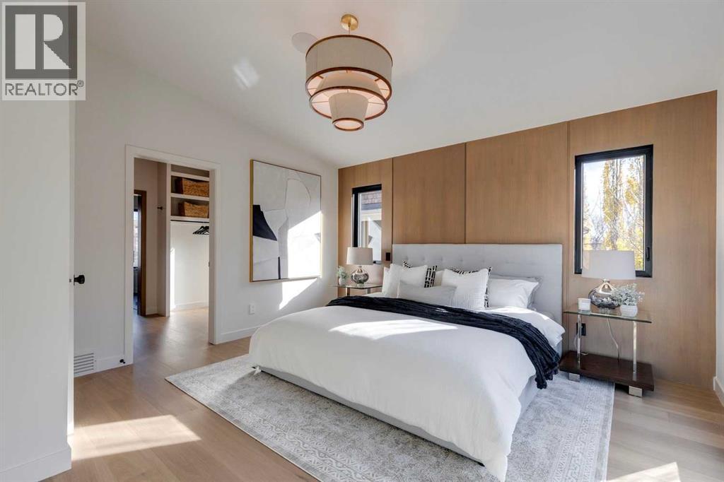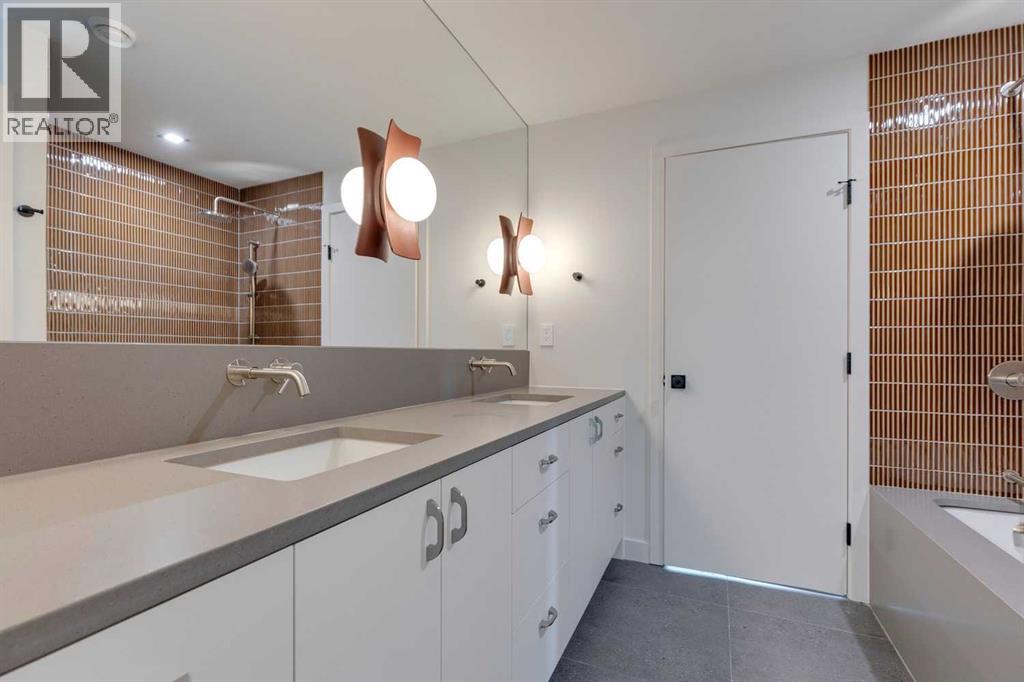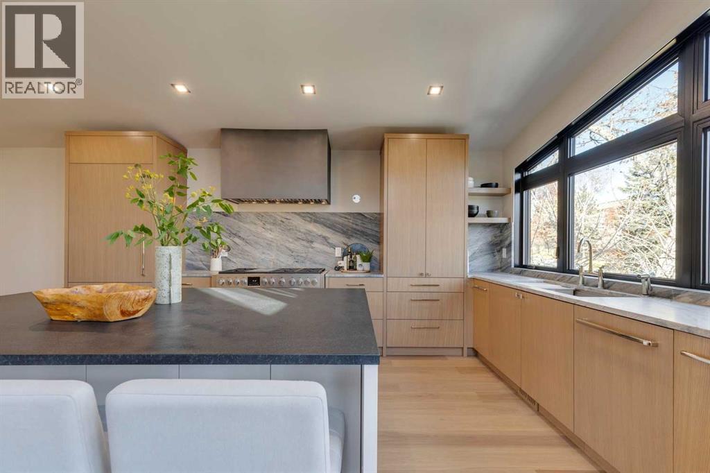 Welcome to 3423 23 Street NW, a mid century modern luxury residence, located in the highly desirable community of Charleswood. This newly built home offers over 3,400 sq. ft. of thoughtfully designed living space, showcasing an impressive blend of architectural sophistication, premium natural materials and state-of-the-art smart home features. The exterior makes an immediate statement with real brick, NewTech wood composite cladding, timber soffits and smooth stucco, creating a refined and low-maintenance façade that complements the mature, tree-lined street.Step inside to a foyer featuring white oak wall paneling and Limestone Bluestone pavers, setting the tone for the elegance carried throughout the home. The main level centers around a stunning chef-inspired kitchen equipped with a 48” Fulgor range, hoodfan & dishwasher, 36" Thermador fridge, all top of the line appliances. The perimeter counters are Temptation Quartzite w/leather finish, the island countertop - absolute Black granite w/brushed finish create a dramatic focal point, while custom white oak and painted cabinetry offer generous storage. The adjacent living and dining areas provide a seamless open-concept layout, highlighted by a gas fireplace with a Concrete Quartz surround, custom steel detailing, white oak millwork and expansive row of patio doors & windows that bathe the space in natural light.The upper level is anchored by an exceptional primary suite designed as a true retreat. The ensuite features striking “Fusion Wow” Quartzite, micro cement walls and ceilings in the shower, Riobel fixtures, a rain shower, freestanding tub and heated porcelain floors. A home office is adjacent to the primary bedroom. Two additional spacious bedrooms share a stylish Jack and Jill bathroom with Concrete Quartz finishes and glazed porcelain tile. A beautifully designed laundry room with LG large-capacity appliances, stone counters and built-in drainage adds convenience and functionality.The fully developed lo wer level offers a versatile media & recreation area with custom oak paneling, a fourth bathroom with heated floors and ample storage. This space is ideal for family living or entertaining guests. Comfort and convenience are elevated with integrated smart home technology, including Lutron lighting control, SONOS built-in speakers across five zones, HIK vision exterior security cameras, Wi-Fi controlled heated floors, multi-zoned furnace and central air conditioning system for year-round climate control.A heated double garage with hydronic in-floor heating and EV charging r-in provides both practicality and modern convenience. Every element of this home reflects careful craftsmanship, timeless design and luxurious functionality. Located on a quiet street just moments from parks, schools, the University of Calgary and urban amenities, this extraordinary residence is elegance personified. The concrete foundation, subfloor + small part of south wall was kept intact from 1961 house. (id:47421)