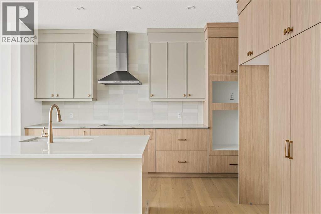 The stunning Savona 3 Estate model by Brookfield Residential is now available in the community of Livingston. Situated on a premium walkout lot backing directly onto green space, this home offers the rare luxury of no neighbours directly behind. This fully developed residence features 4 bedrooms, 3.5 bathrooms, 3 spacious living areas, and a dedicated office, offering the perfect blend of design, functionality, and high-end finishes. Set on a 4,844 sq. ft. east-facing lot, this beautiful property boasts over 3,500 sq. ft. of developed living space across three levels. The main floor features a bright, open-concept layout with 9’ ceilings, 8' doors and hardwood flooring throughout. Expansive rear-facing windows flood the home with natural light throughout the day, creating a warm and inviting atmosphere. The gourmet kitchen is equipped with full-height cabinetry and a premium suite of stainless-steel appliances, including a gas cooktop, chimney-style hood fan, built-in wall oven and microwave, and a French-door refrigerator. A large walk-through pantry adds both functionality and additional storage. The kitchen flows seamlessly into the adjacent dining area, which easily accommodates a full-sized dining set, and the impressive rear great room featuring an open-to-above design and a full-height tiled gas fireplace overlooking the backyard. Completing the main level is a generous front foyer, a versatile office/flex room, a 2-piece powder room, and a rear mudroom with a large walk-in closet for added storage. Upstairs, the primary suite (14’ x 13’) overlooks the backyard and includes a spa-inspired ensuite with a fully tiled glass shower, deep soaker tub, dual sinks, and a walk-in closet complete with storage. Two additional bedrooms, a well-appointed 4-piece bathroom, a large bonus room, and an upper-level laundry room complete this floor. The fully developed walkout basement adds nearly 1,000 sq. ft. of additional living space, including a fourth bedroom, full bathro om, and a bright recreation/media room with large windows. A wet bar and flexible open area make this an ideal space for a home gym, playroom, or entertainment zone. The west-facing backyard offers ample space for children, pets, and outdoor entertaining. A triple-car garage completes the property, providing exceptional storage and secure parking year-round. Backed by Brookfield’s comprehensive builder warranty and the Alberta New Home Warranty Program, this move-in-ready home offers both quality and peace of mind. Located in the vibrant community of Livingston, residents will enjoy access to parks, pathways, and future commercial amenities. (id:47421)