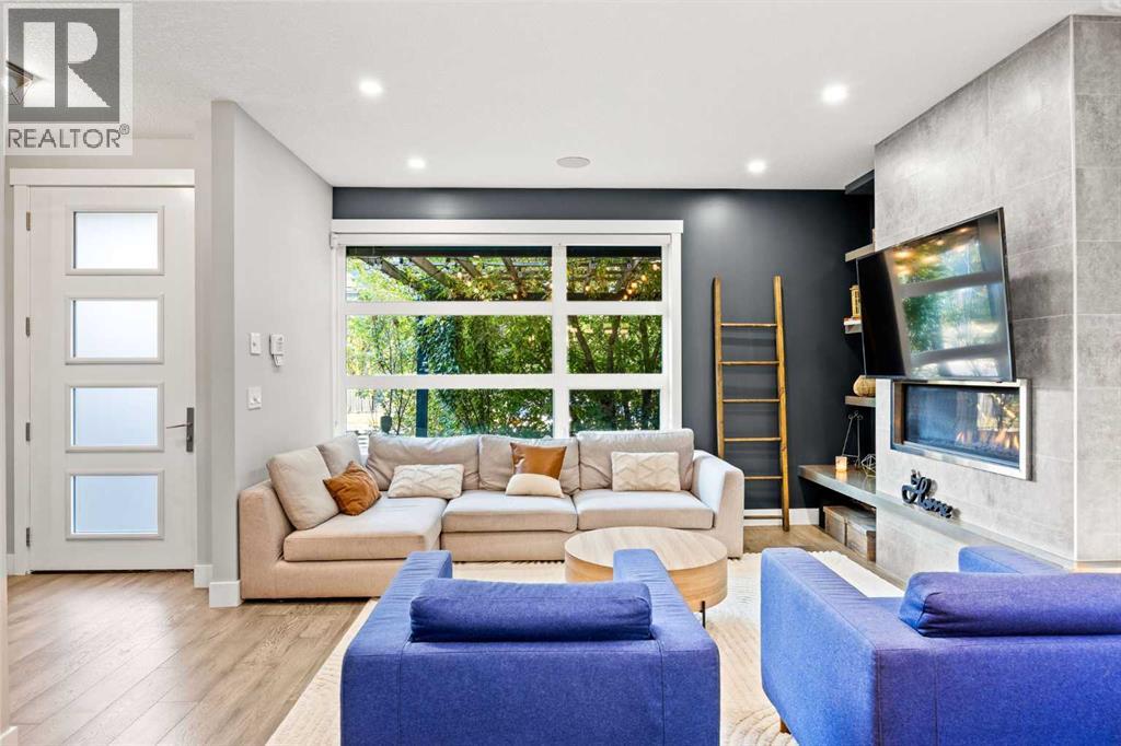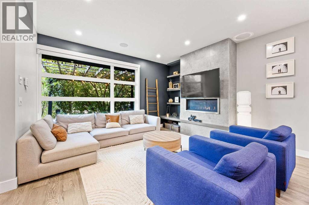 Incredible opportunity to own one of the best priced semi-detached luxury infills in the inner city. A beautiful home in the heart of Bridgeland offering all the perks of city living with no condo or HOA fees. A 5 minute walk from Downtown, Bow River Pathway, and all the amenities the beautiful community of Bridgeland has to offer. Walk or bike to work with the bike lane directly in front of your home. This is not your typical semi-detached property, offering 3 bedrooms + an office with an adjacent rooftop balcony & 3.5 baths, CENTRAL AC, situated on a 36-foot-wide lot, it offers a noticeably more open and spacious feel throughout. Perfectly situated across from Flyover Park, this home features over 2,400 sq. ft. of developed living space designed with comfort and style in mind. Upon entering, you’ll immediately notice the 9 ft ceilings and engineered hardwood flooring that flow seamlessly across the main floor. The bright, wide living room is anchored by a tile-surround gas fireplace with custom built-in shelving, extending naturally into the dining area and open concept gourmet kitchen. The kitchen showcases beautiful quartz countertops, modern white cabinetry, a subway tile backsplash, and stainless steel appliances. A tucked away pantry and 2-piece bathroom complete the main level. The open riser staircase serves as an architectural focal point connecting all levels. On the second floor, you’ll find the serene primary retreat, complete with a walk-in closet and 5-piece spa inspired ensuite. A quiet reading nook within the primary bedroom captures the morning sun through large, bright windows. This level also includes a spacious laundry room for added convenience. Heading up to the third floor, natural light floods the hallway with beautiful downtown views. The open bonus room offers flexible space for a home office, studio, or entertainment area, and opens onto the rooftop deck equipped with a built-in gas line and stunning city skyline views. This level is comp lete with an additional bedroom and a 4-piece bath overlooking downtown. The fully developed basement includes a spacious media room, perfect for movie nights, a fully equipped wet bar, bedroom, and 4-piece bathroom, ideal for guests or extended family.Out front, your private patio is enveloped by mature trees that naturally screen the space from the street, creating a serene and intimate retreat in the heart of the city. Complete with a built-in gas line, it’s the perfect setting for summer BBQs or quiet evenings outdoors. The detached garage offers plenty of space for your car parking needs and generous built in storage for bikes, tools, and all your outdoor essentials. A Walk Score of 94 and a Bike Score of 97, this home offers unbeatable convenience. Steps from Blush Lane Organic Market, Bridgeland Market, Luke’s Drug Mart, UNA Pizza, Village Ice Cream, coffee shops & a variety of beloved local spots. Don’t miss this opportunity. Homes like this with this location rarely come to market in Bridgeland. (id:47421)