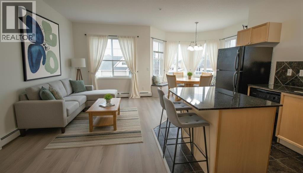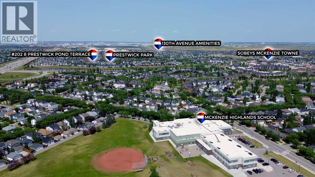 *** Price Improvement and 6 MONTHS of CONDO FEES INCLUDED! *** OPEN HOUSE! Saturday, February 14th, 2026, from 1:00 PM to 3:00 PM. Stunning 2 bed 2 bath CORNER unit in beautiful McKenzie Towne – Welcome home to 202 - 8 Prestwick Pond Terrace. This unit has been impeccably maintained in the sought-after Caledonia on the Waterfront complex. The open-concept living space welcomes with plenty of natural light and neutral colors. The well-designed kitchen features granite countertops, maple cabinetry & center island with seating overlooking the spacious living area and new luxury vinyl plank flooring. The adjacent dining area is framed by bay windows & offers access to the private outdoor balcony. The primary bedroom is generously sized, featuring a 4-piece ensuite bathroom and a walk-in closet with new carpet. A second bedroom, 3-piece bathroom with walk-in shower, and enclosed laundry complete the space. Additional building amenities include a quiet, pet-friendly complex, secure underground parking, and common living/dining/kitchen/library – perfect for gathering with family & friends. This prime location means you can walk to incredible dining & shopping, minutes to 130th Ave amenities, and easy access throughout the city on nearby Deerfoot & Stoney Trail. Enjoy the beautiful pond right outside, as well as walking and biking on local pathways. Book your viewing today! (id:47421)