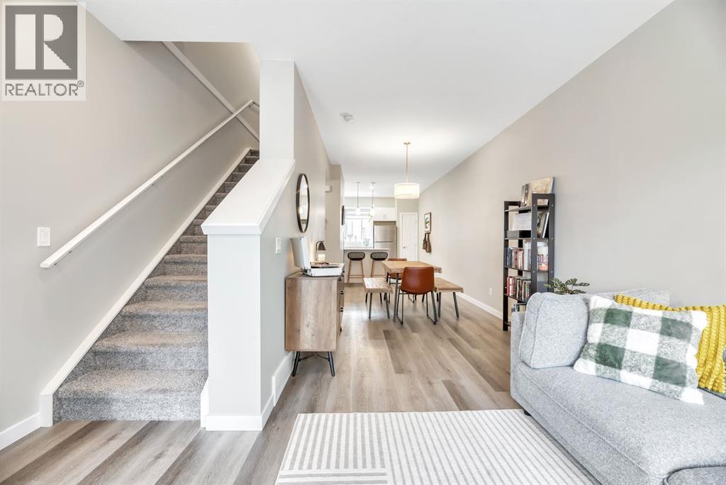 Modern and overlooking the courtyard, this nearly new, DUAL PRIMARY townhome is located in the exciting and growing community of Belmont. Just minutes from Spruce Meadows and with quick access to Macleod Trail and Stoney Trail, this clean and excellently maintained home offers exceptional convenience to a wide range of amenities. The main level is an open floorplan featuring luxury vinyl plank flooring and a bright kitchen that is both functional and stylish. Quartz countertops with an extended island, full subway tile backsplash, stainless steel appliances, white panel cabinetry, contemporary pendant lighting, and a pantry for extra storage. The dining area easily accommodates a full-size table, making it great for entertaining. Completing this level is a spacious living room with an oversized window overlooking the courtyard and access to a great deck to enjoy the beautiful evenings.Upstairs, you’ll find two spacious primary bedrooms, each with its own full wall closets and four-piece ensuites that feature quartz countertops, undermount sinks, and trendy marble-style tile. A conveniently located upper-floor laundry sits between the bedrooms for everyday ease.This interior unit features a double attached tandem garage plus parking pad outside giving a total of 3 parking stalls. It’s also just steps away from visitor parking, making it easy for guests to visit. Steps from green space and pathways, and with a future City of Calgary recreation centre, the creative Mounds Playground, and an excellent trail system nearby, this community offers a perfect blend of nature and urban convenience. Enjoy the natural surroundings—Belmont is a young and vibrant community, a great place to call home! (id:47421)