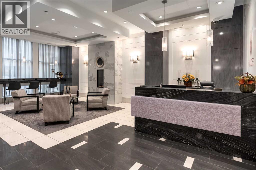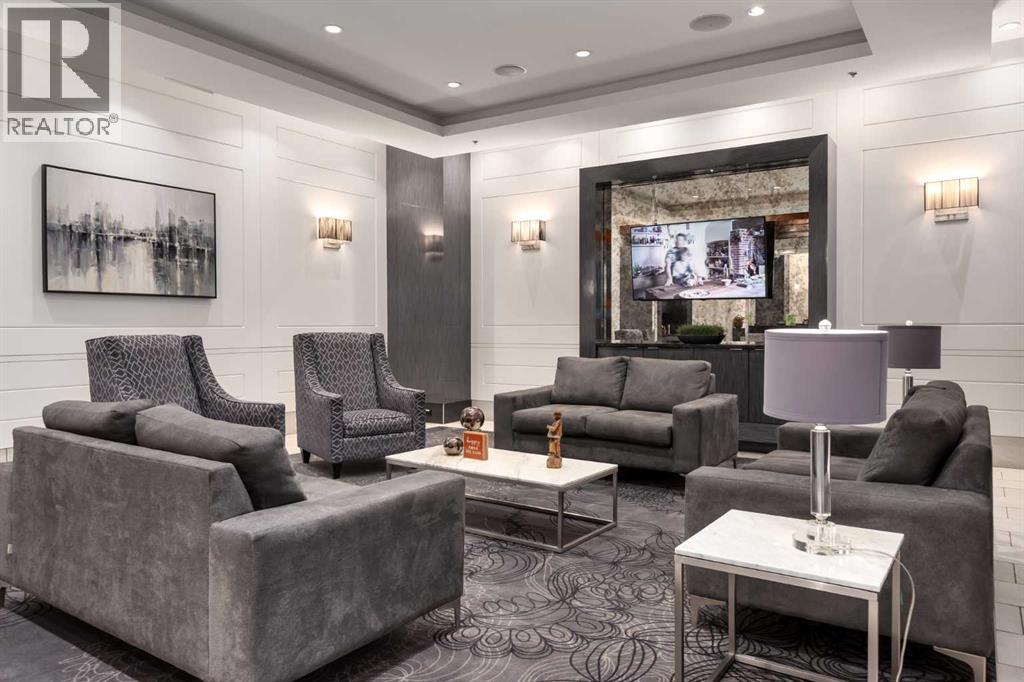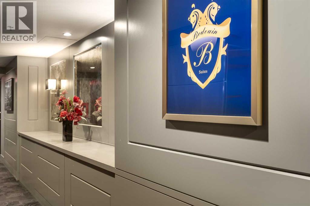 Experience elevated sophistication on the exclusive BEDOUIN Floor at Vogue! One of only four floors in the building with these premium upgrades, this gorgeous corner suite is soaked in natural light and showcasing panoramic views of the city skyline and Rocky Mountains. The BEDOUIN Collection offers refined details including designer lighting with dimmers, custom bedroom paneling with wall sconces, and premium finishes throughout.The open concept kitchen features two-tone cabinetry, quartz counters, under-cabinet lighting, a custom island with bar seating, tile backsplash, and upgraded stainless-steel appliances including a chimney-style hood fan. The chic living space is complete with a book matched built-in walnut entertainment unit. The sizeable corner balcony features a gas BBQ line, making BBQing a dream. The primary bedroom, wrapped in windows, features a spa-inspired ensuite with quartz countertops, tile floors, modern vanity with storage, and a full-height tiled tub/shower combo. The second bedroom offers flexibility as a guest room or home office and is steps from its own full bathroom with a floor-to-ceiling tiled shower and upgraded glass door. The bedrooms are ideally separated for ultimate privacy.Additional highlights include in-suite laundry with new dryer (2025), a titled secure heated underground parking stall with storage, and central A/C. Vogue offers an elegant, hotel-style lobby with full-time concierge plus exceptional amenities: a state-of-the-art fitness centre, yoga studio, billiards and party rooms, and the 36th-floor Sky Lounge with rooftop terraces and breathtaking 360° mountain and city views. Walk to Prince’s Island Park, Kensington Village, the LRT (free zone), boutique shops, fine dining, cafes, and Calgary’s +15 network—all just steps away. This is luxury urban living at its finest. (id:47421)