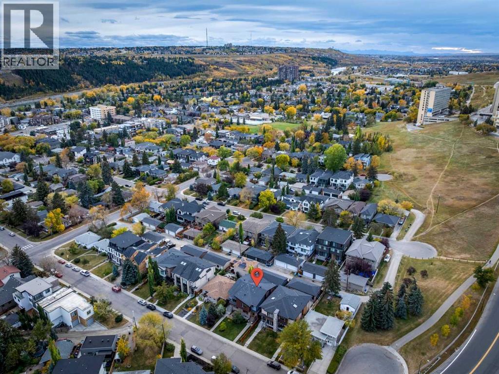 Located in the heart of the highly sought-after inner-city community of Parkdale, this beautiful 2-storey home offers over 2,900 sqft of total living space and an exceptional blend of modern design, thoughtful upgrades, and an unbeatable location just steps down the hill from Foothills Hospital, ideal for anyone working at the hospital and for those seeking a walkable, connected inner-city lifestyle. Freshly painted throughout, the main floor features impressive 10’ ceilings, brand-new flooring, a bright flex room at the front of the house (office, secondary living space, music room, formal dining room, etc.), a convenient half bathroom with granite counters, and a spacious living room anchored by a cozy gas fireplace and in-ceiling speakers. The chef-inspired kitchen is both stunning and functional, boasting granite countertops, ceiling-height cabinetry, a huge walk-in pantry, gas stove, garburator, Bosch dishwasher (5 years old), in-wall oven, and an upgraded kitchen faucet (3 years old), flowing seamlessly into the dining area for effortless entertaining. Upstairs offers 9’ ceilings, 3 generous bedrooms, 2 full bathrooms, and an upper laundry room with granite counters and upgraded washer and dryer (2 years old). The primary bedroom impresses with vaulted ceilings, a walk-in closet, and views of the off-leash dog park and city centre, complemented by a luxurious ensuite featuring a jetted soaker tub, large tiled shower, dual sinks, granite counters, tile flooring, and built-in speakers. The fully developed basement continues the high-quality finish with 9’ ceilings, a spacious recreation room with wet bar including granite counters, built-in wine rack and mini fridge, a bedroom with walk-in closet, and a full bathroom with granite counters, tub/shower combination, and a new toilet installed in 2025. Additional highlights include in-ceiling speakers throughout the home, central air conditioning, cedar siding, a new furnace installed in August 2025, and a double de tached garage off the back lane. The fully fenced backyard is perfectly designed for low-maintenance enjoyment, featuring aggregate concrete (also featured in the front of the property), a side dog run, and a gas BBQ hookup, while the surrounding Parkdale community offers exceptional access to parks, recreation facilities, an outdoor skating rink in winter, excellent schools, the Bow River and its extensive pathway system, downtown Calgary, Kensington, and quick access west to the mountains, making this an outstanding opportunity to own a move-in-ready home in one of Calgary’s most desirable neighbourhoods. For those with four-legged friends, you will enjoy the off-leash dog park just a few houses away! (id:47421)