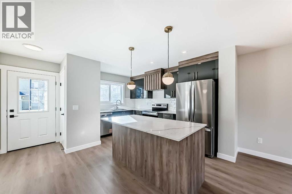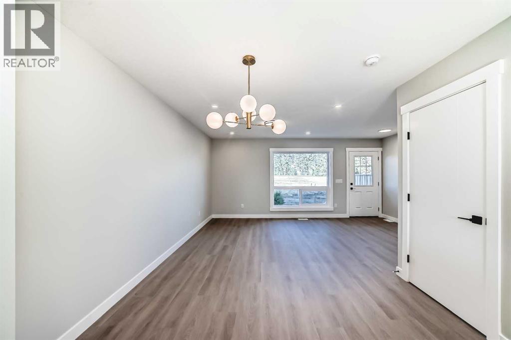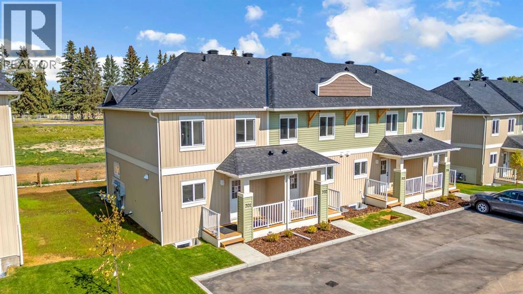 Welcome to 703 Clover Road – a newly built, fully finished townhome that perfectly blends modern design, quality craftsmanship, and thoughtful functionality. Offering over 1590 sq ft of fully developed living space, this stunning two-story features 4 bedrooms and 3.5 bathrooms, making it ideal for young professionals, investors or families seeking extra space and comfort. Step inside and you’ll be greeted by 9-foot ceilings, a bright and open layout, and stylish finishes throughout. The main floor features LVP flooring, numerous LED pot lights, and a beautiful kitchen with quartz countertops, high-gloss cabinetry, subway tile backsplash, and Whirlpool stainless steel appliances. The undermount sink with a pull-spray faucet and a convenient water line to the fridge add both elegance and practicality. Upstairs, you’ll find a spacious primary suite complete with its own 3 pc ensuite and walk in closet, 2 additional bedrooms, a main 4-piece bathroom, and stacked laundry room for added convenience. All bathrooms feature quartz counters, undermount sinks, ceramic tile floors and walls, and comfort-height toilets. The fully finished basement expands your living space with a cozy recreation area, a custom dry bar with a mini fridge, an additional bedroom, and a full bathroom—perfect for guests, entertaining, or a home office setup. Additional highlights include a high-efficiency furnace and 50-gallon hot water tank. Outside, the home showcases Smartboard siding, and a decorative fiberglass front entry door. Large private concrete patio equipped with a gas line rough-in for easy summer BBQs. This home also includes two assigned parking stalls, and a low-maintenance lifestyle with monthly condo fees of $290.25. This move-in-ready home combines modern design, energy efficiency, and functional living in a peaceful Carstairs community — the perfect place to call home. (id:47421)