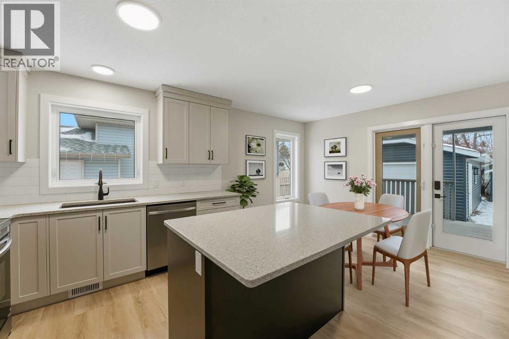 Be prepared to be impressed—this is a rare opportunity to own a home that feels brand new without the price tag of new construction. The property has been substantially renovated down to the studs, with major exterior updates also completed, and offers excellent curb appeal with new siding and a generous front porch. Inside the front door you’ll find vinyl plank flooring, crisp white trim, modern lighting, and fresh contemporary paint colours throughout, along with a functional front entry featuring a built-in bench and coat hooks. The spacious living room, located to the left of the entrance, is filled with natural light from a large front-facing window. The stunning kitchen showcases ceiling-height cream cabinetry, quartz countertops, a subway tile backsplash, an upgraded stainless steel appliance package, and a contrasting island with dark cabinetry. The adjacent dining area overlooks the backyard and deck through patio doors, creating a bright and inviting space. The main level includes a primary bedroom with a four-piece ensuite, a second bedroom, a three-piece main bathroom, and a dedicated laundry area. The fully finished basement offers a large family and games room, two generous bedrooms, a four-piece bathroom, and a large utility and storage room. Being renovated to the studs means the home also benefits from new plumbing, electrical, furnace, hot water tank, electrical panel, shingles, and appliances. Outside, the heated garage features new siding and exterior lighting, with garage shingles replaced in 2014, and the long driveway to it provides additional parking. The fully fenced and landscaped backyard includes a custom-built shed and a large covered deck—perfect for enjoying the outdoors rain or shine. Ideally located, 82 Bruns is within walking distance to trails, parks, playgrounds, schools, shopping, and amenities. (id:47421)