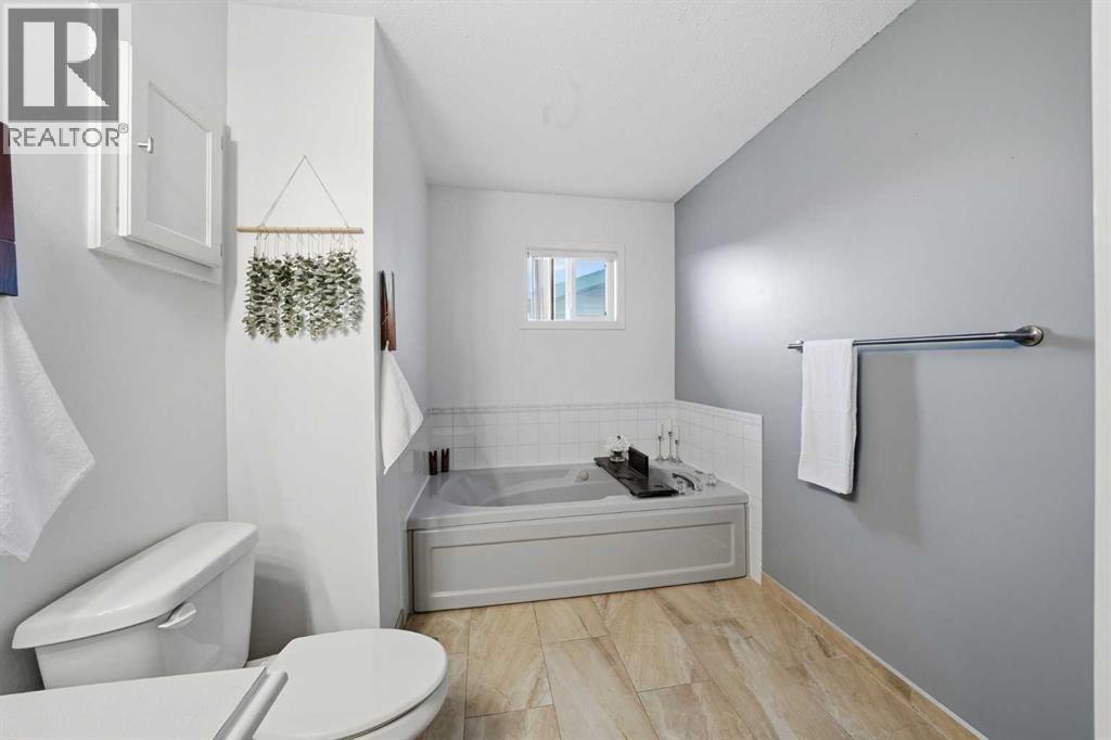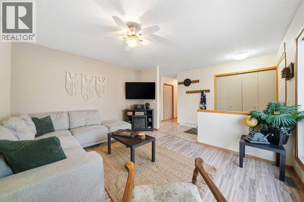 Welcome to 5 Greenview Way. A home that feels as warm and welcoming as the street it sits on. Tucked beneath mature trees on one of Strathmore’s most charming pockets, this sweet blue bungalow greets you with a covered front porch and the kind of curb appeal that instantly feels like home. With a brand new roof and siding in 2025, the exterior not only looks fresh and inviting but also brings peace of mind for years to come. It is the kind of place where you picture morning coffee on the porch, neighbours waving as they walk by, and quiet evenings as the sun dips behind the trees. Step inside and you are welcomed by a generous entry with a built in closet and storage bench, perfect for busy mornings and everyday life. The living room is filled with natural light from a large front window, creating a bright and inviting space to relax or gather. The kitchen offers timeless oak cabinetry with updated hardware, newer appliances, and a modern faucet, blending warmth with function. At the heart of the home, the dining area sits perfectly between kitchen and backyard, making it easy to stay connected whether you are hosting, cooking, or keeping an eye on kids playing outside. The main floor features a spacious primary bedroom, two additional bedrooms, and a full bathroom complete soaker tub, and separate shower. It is a layout that works beautifully for families, guests, or anyone wanting the ease of main floor living. Downstairs, the fully developed basement offers even more space with an additional bedroom, 2 flex spaces, a full bathroom, and a tiled finish throughout. The utility room houses two hot water tanks and the laundry, keeping everything organized and efficient. Outside, the backyard is a true highlight. With mature trees, open green space, and a detached double garage backing onto the rear lane, there is room for vehicles, toys, and projects. Additional parking in the back plus street parking out front makes life here easy and flexible. Homes with this much c haracter and this much space, are hard to find in Strathmore. 5 Greenview Way is not just a house, it is a place to settle in, grow, and create the next chapter of your story. (id:47421)
