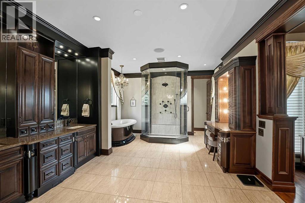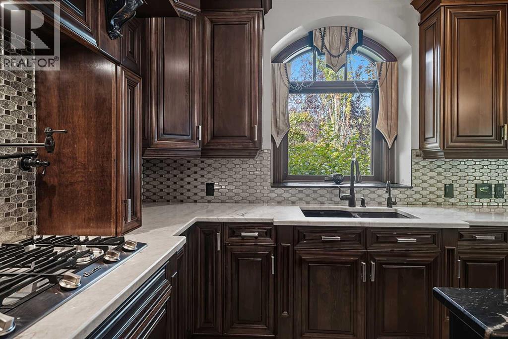 Nestled in the prestigious Jarvis Bay Country Estates, this executive two-storey residence exemplifies unparalleled craftsmanship & timeless luxury. Boasting an attached four-car garage & a separate heated four-car shop, this one of a kind estate sits on a meticulously landscaped ¾-acre lot, offering privacy & prestige. Striking stone accents, an elegant driveway & impeccable landscaping create breathtaking curb appeal. A grand foyer welcomes you with soaring 18-foot ceilings & a stunning crystal chandelier. The dramatic curved staircase, adorned with rich wood wainscoting & wrought-iron railings, serves as the architectural centerpiece. The formal dining room, complete with built-in wet bar, provides an elegant space for entertaining. The chef’s dream kitchen features ceiling-height custom maple cabinetry, granite countertops, a large centre island with prep sink, full-height decorative tile backsplash, crown moulding & premium appliance package including Thermador & Miele. Complete with a pot filler, double ovens & built-in cappuccino machine elevate both form & function. Flooded with natural light, the breakfast nook & adjacent sitting area with gas fireplace flow seamlessly into the sunroom & to the expansive backyard oasis. An upper gallery overlooks the grand family room adorned with extensive millwork, a full wall of windows framing serene views & a magnificent wood-burning fireplace with stacked stone & maple surround. A private main floor office with custom built-ins offers an ideal work-from-home retreat. The luxurious primary suite is a true sanctuary, featuring coffered ceilings, a private den with fireplace & wet bar & a spa-inspired ensuite with heated floors, dual vanities, makeup station, oversized glass steam shower with dual heads & body jets & an extraordinary walk-in closet with glass shoe displays, maple millwork & centre island. Upstairs, a lofted overlook connects two generous bedrooms, two well-appointed bathrooms, one private ensuite & doubl e doors that open into a fully soundproof, two-tiered home theatre a cinematic masterpiece with custom millwork, wet bar & dramatic pillars. The fully developed lower level offers a fourth bedroom with ensuite, expansive recreation area, wet bar, dedicated poker & billiards zones, a stunning stone-clad wine room, flexible bonus room/gym & a convenient men’s washroom with urinal—all warmed by in-floor heat. Outdoor living is elevated with a massive two-tiered composite deck partially covered, built-in outdoor stone fireplace & discreet outdoor 2 piece bathroom. Professionally landscaped grounds feature mature trees, raised stone flower beds, aggregate walkways, underground sprinklers & full vinyl fencing. Car enthusiasts will revel in the detached 43’x25’ heated shop with vaulted ceilings, 220V wiring, in-floor heat & integrated sound system, complemented by the attached 48’ x 26’ garage with epoxy floors & dual bays. No expense has been spared, a rare offering of luxury, functionality & impeccable design (id:47421)